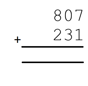 Q9) 807+231 = [ 1038]