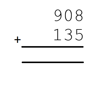 Q8) 908+135 = [ 1043]