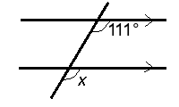 Q7) Calculate the angle x. [ 111 ° ]