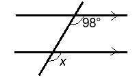 Q6) Calculate the angle x. [ 98 ° ]
