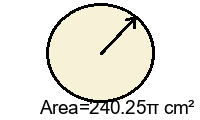 Q2) Find the exact area of the circle in terms of \(\pi\) . [ 1332.25\(\pi\) \(cm^2\)]