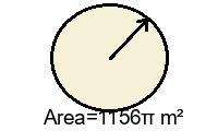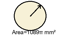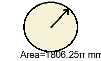 Q3) Find the exact area of the circle in terms of \(\pi\) . [ 1444\(\pi\) \(mm^2\)]