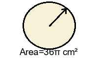 Q3) Find the exact area of the circle in terms of \(\pi\). [ \( 36\)\(\pi\)\(cm^2\) ]
