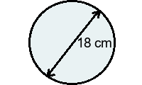 Q5) Find the exact area of the circle in terms of \(\pi\) . [ 81\(\pi\) \(cm^2\)]