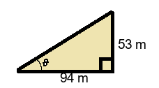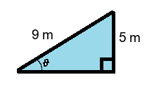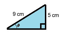 Q4) Find the value of the missing angle \( \theta \) to 1-dp. [ 33.7 °]