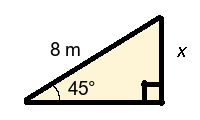 Q4) Find the missing length x of the triangle to 1-dp. [ 5.7 m]