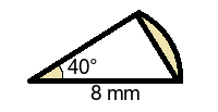 Q4) Find the area of the segment to 3sf. [ 5.12 \( mm^2 \)]
