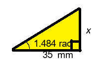 Q5) Find the missing length x of the triangle to 1-dp. [ 35.0 mm]