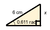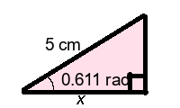Q5) Find the missing length x of the triangle to 1-dp. [ 0.8 cm]