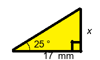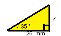 Q4) Find the missing length x of the triangle to 1-dp. [ 17.6 mm]