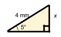 Q5) Find the missing length x of the triangle to 1-dp. [ 4.9 mm]