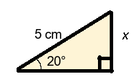 Q4) Find the missing length x of the triangle to 1-dp. [ 7.9 mm]