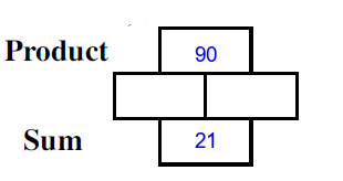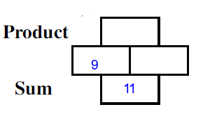 Q9) Complete the missing rectangles [ sum= 19, product=90]