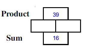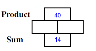 Q3) Complete the missing rectangles [ sum= 13, product=40]