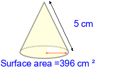 Q2) Calculate the surface area of the cone to 3sf. [ 37.7 \(cm^{2}\)]