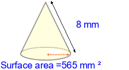 Q5) Calculate the radius of this cone to 3sf. [ 8 \(mm\)]