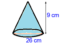 Q2) Calculate the radius of the cone to 3sf. [ 96 \(mm\)]