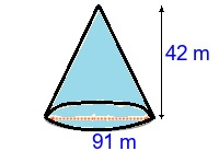 Q5) Calculate the volume of the cone to 3sf. [ 140000 \(m^{3}\)]