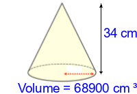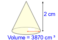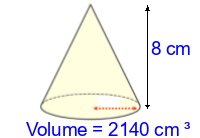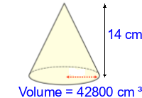 Q2) Calculate the volume of the cone to 3sf. [ 42900 \(mm^{3}\)]