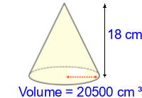 Q3) Calculate the radius of the cone to 3sf. [ 16 \(cm\)]