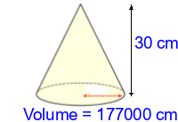 Q4) Calculate the radius of the cone to 3sf. [ 40 \(cm\)]