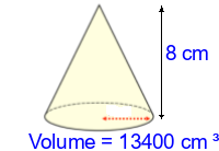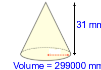 Q3) Calculate the volume of the cone to 3sf. [ 24200 \(mm^{3}\)]