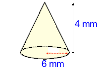 Q3) Calculate the volume of the cone to 3sf. [ 67.0 \(mm^{3}\)]