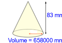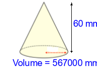 Q1) Calculate the volume of the cone to 3sf. [ 171000 \(mm^{3}\)]