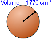 Q4) Calculate the radius of the sphere to 3sf. [ 6.2 \(cm\)]