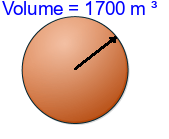 Q1) Calculate the volume of the sphere to 3sf. [ 2140 \(m^{3}\)]