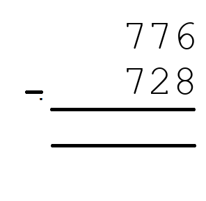 Q2) 776 - 728 = [ 48]