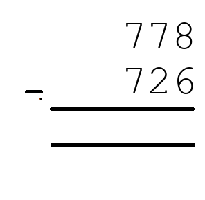 Q7) 778 - 726 = [ 52]