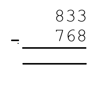 Q8) 833 - 768 = [ 65]