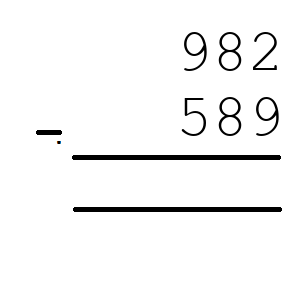 Q10) 982 - 589 = [ 393]