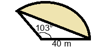 Q5) Find the radius of the segment to 3sf. Whose area is 1200 \( m^2 \) [ 54 m]