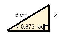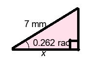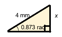 Q4) Find the missing length x of the triangle to 1-dp. [ 3.4 mm]