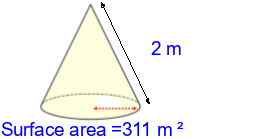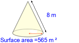 Q5) Calculate the radius of this cone to 3sf. [ 10 \(m\)]