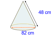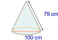Q3) Calculate the radius of this cone to 3sf. [ 79 \(cm\)]