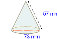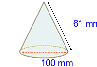 Q5) Calculate the radius of this cone to 3sf. [ 64 \(mm\)]