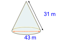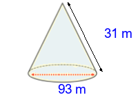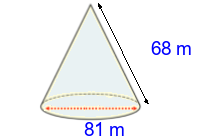 Q1) Calculate the radius of this cone to 3sf. [ 93 \(m\)]