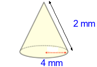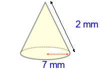 Q2) Calculate the surface area of the cone to 3sf. [ 198 \(mm^{2}\)]