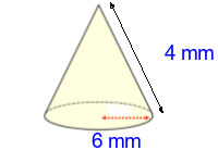 Q5) Calculate the surface area of the cone to 3sf. [ 188 \(mm^{2}\)]
