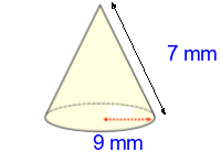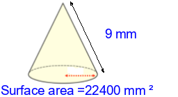 Q3) Calculate the surface area of the cone to 3sf. [ 311 \(mm^{2}\)]