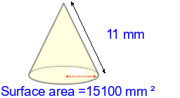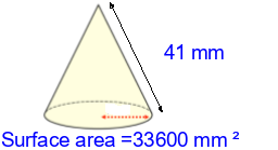 Q4) Calculate the surface area of the cone to 3sf. [ 10700 \(mm^{2}\)]