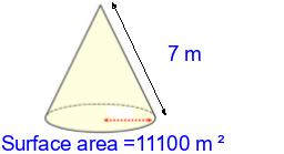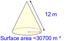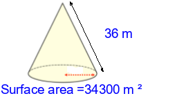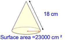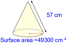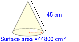Q2) Calculate the surface area of the cone to 3sf. [ 16100 \(cm^{2}\)]